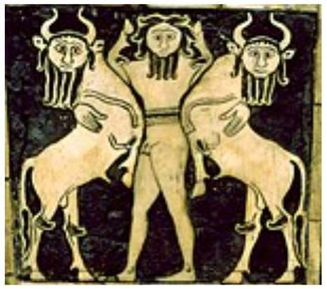 Mesopotamian bull-man Enkidu, also a partner of Gilgamesh, and suggests a