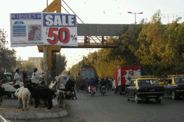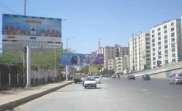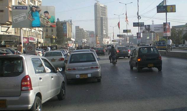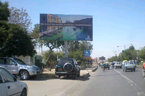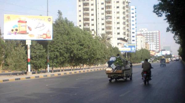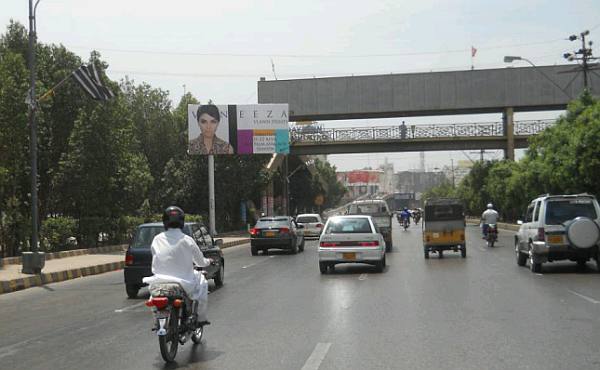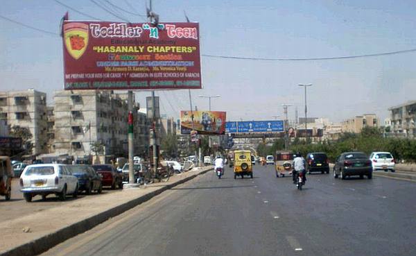 Hoarding Main Shahrah-e-Faisal before PSO Pump Site # 2, Traffic going to