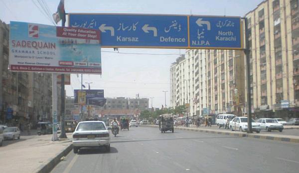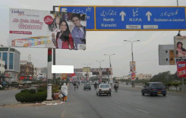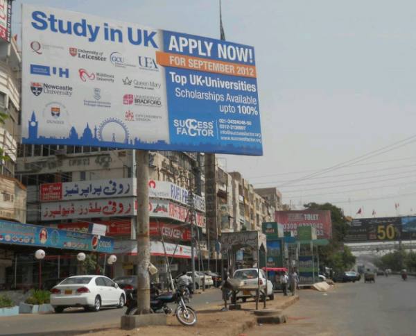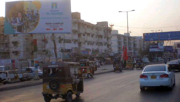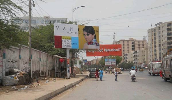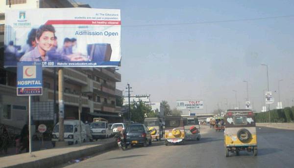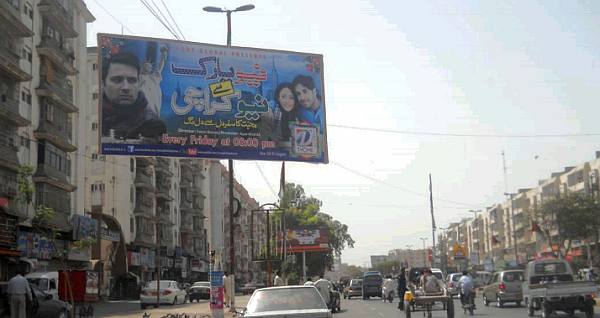 Karachi is a city of about 16 million people. there are many hoardings placed